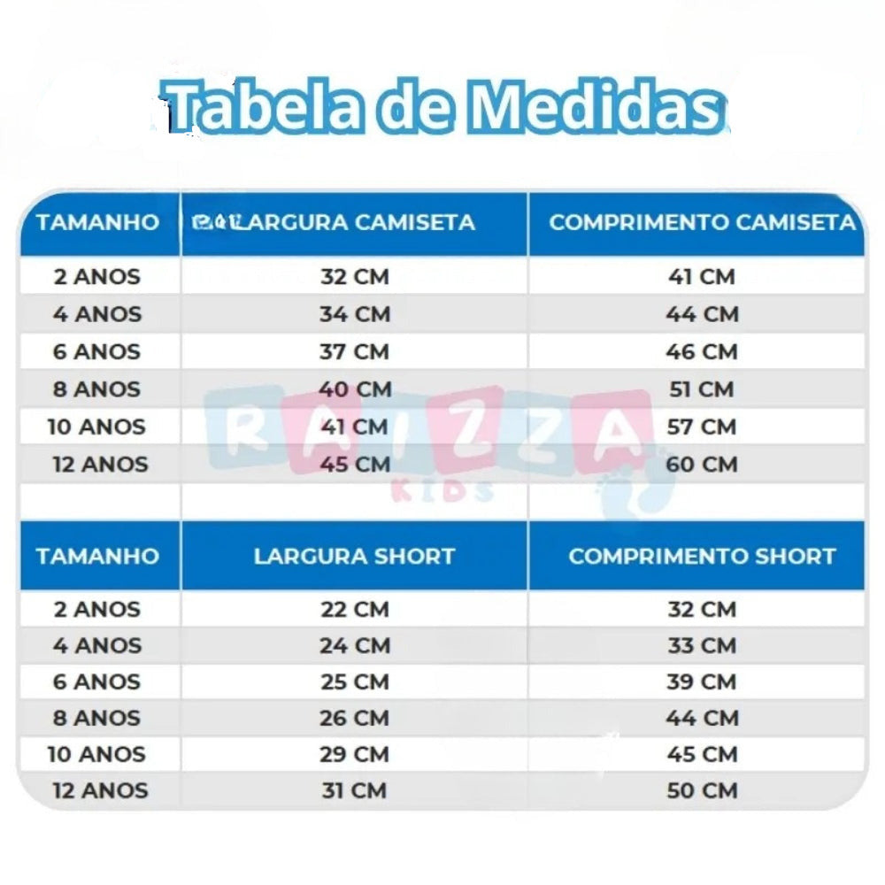- Tamanhos Disponíveis: P, M, G, GG, EGG (de 1 a 12 anos)
